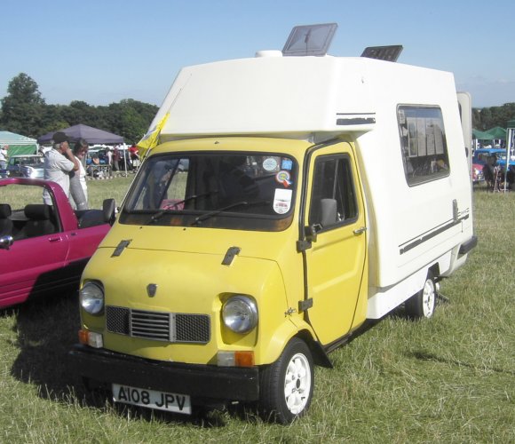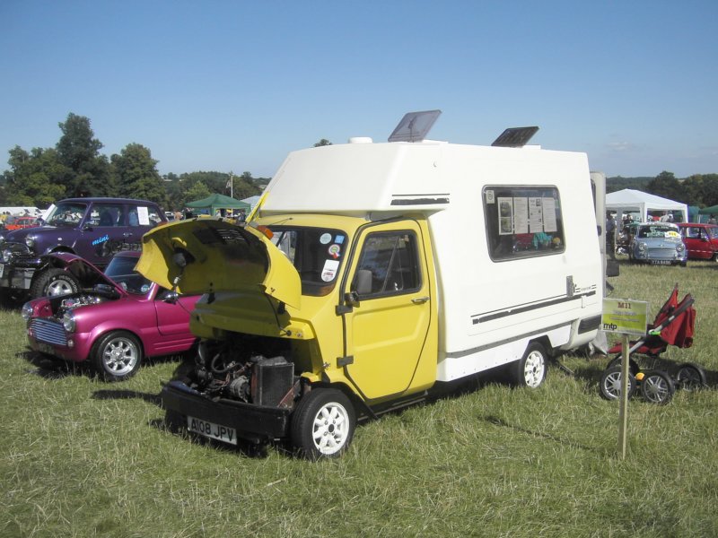 This 1984 Jiffy was built by Mechanical Services of Bolton who later became Indespension, the trailer manufacturers. The chassis was lengthened to accept the Romahome body which was fixed and provided through access to the cab (a demountable body was offered on the Honda Acty chassis). The bench seats can be linked to form a good sized double bed! The vehicle was on display at Mini In The Park at Cornbury Park, Oxfordshire on 21st August 2005. (photos © 2005 R. Porter) |