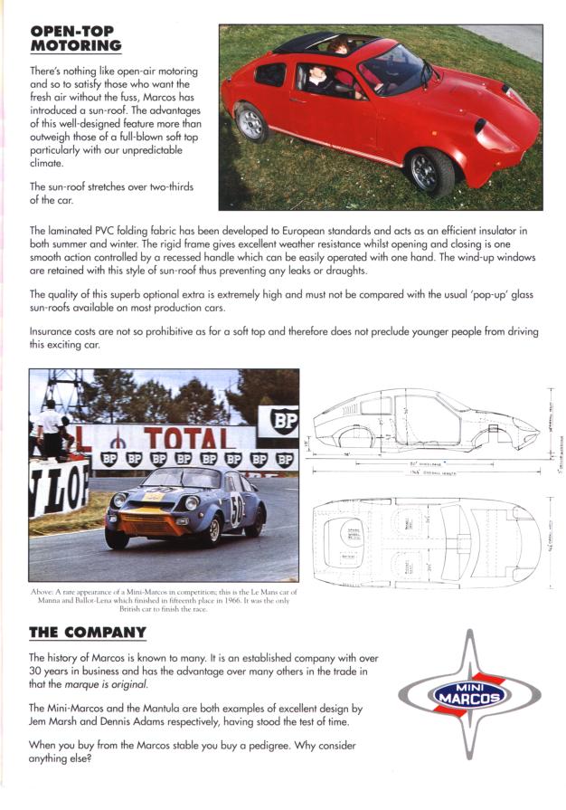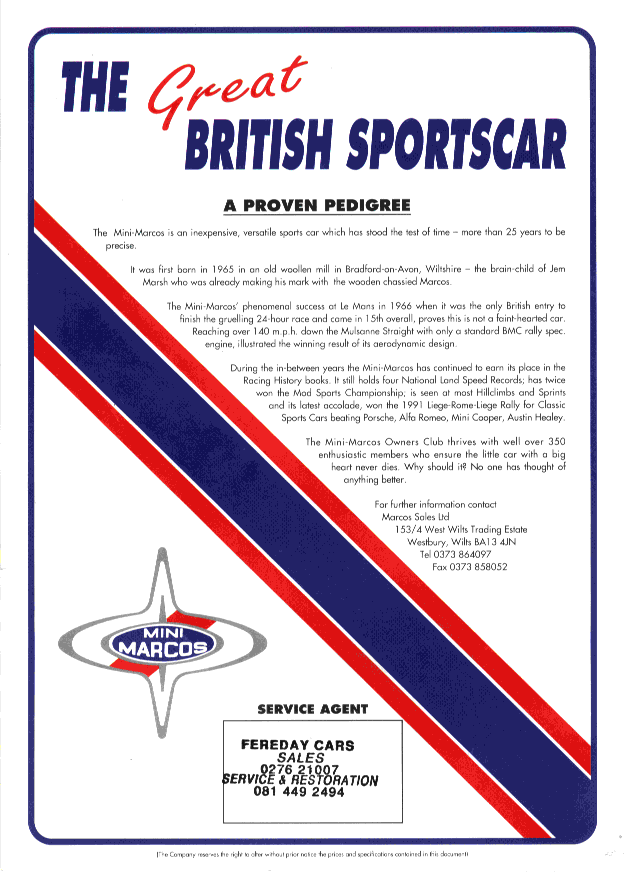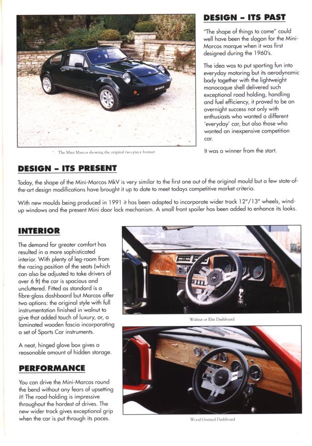 Sales brochure for the Mk. V Mini Marcos, courtesy of Fereday Cars.