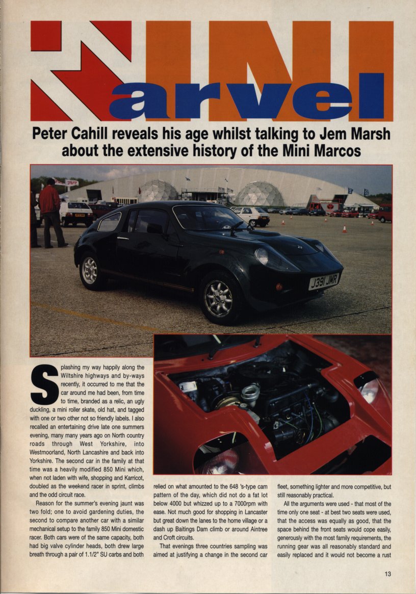 Kit-Car Magazine, July 1992 Mini Marvel Peter Cahill talks to Jem Marsh about the history of the Mini Marcos. Kit Car Magazine Kit Car index | Cuttings Last updated 21st February, 2013