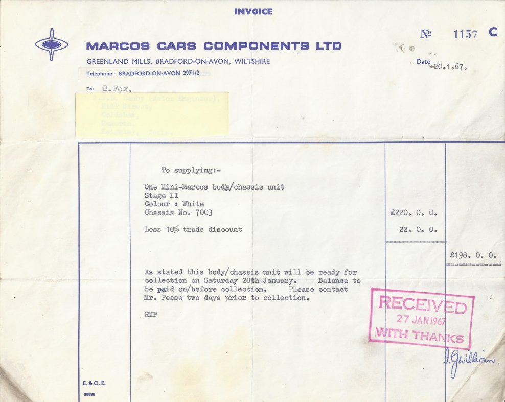 Brian also kindly scanned the original invoice which you can see here. We have no record of this car so do not know whether it still exists. Note shell number 7000 (279 DGJ) in the background at Bradford-on-Avon. |
