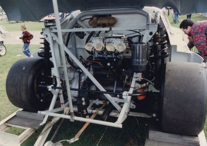 owner Mike Shilvock into a Sports Libre car with a Vauxhall 2-litre engine behind the driver. Only the centre section of