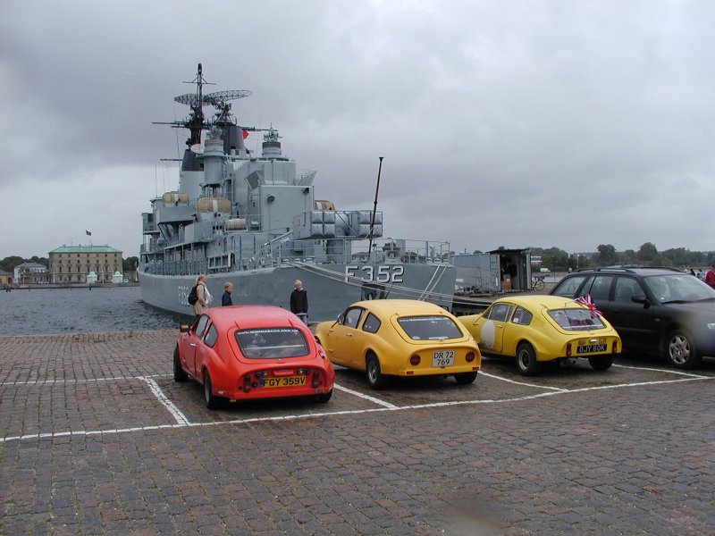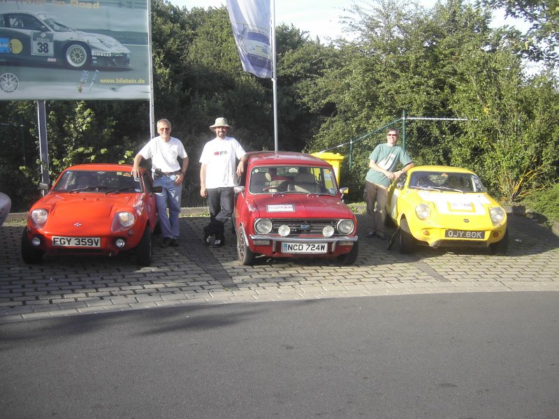grey Mk. III; Olivier Bos yellow Mk. III: Guy Humphries yellow Mk. IV, Haflinger, Wyllis Jeep: Bent and Marlis Larsen ‘red’ Mk. IV: Richard Porter red Mk. V: Roger and Melanie Garland green Mk. V and red Jem: Claus Geitner-Andersen red 1380 Clubman Estate turbo: Andrew Tyndale Guest appearances by: