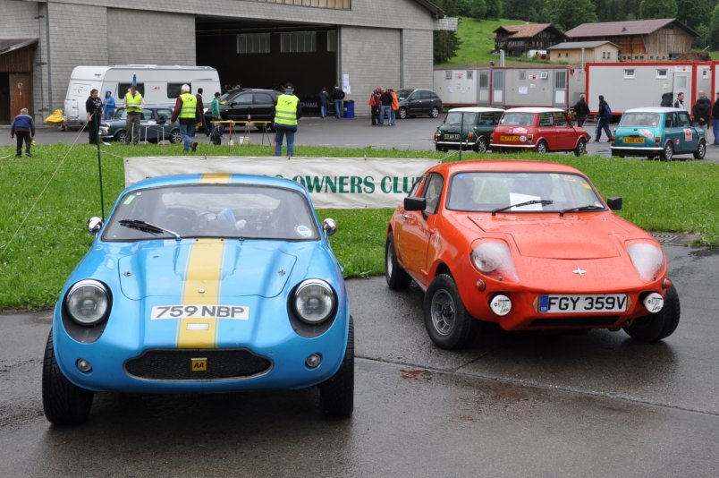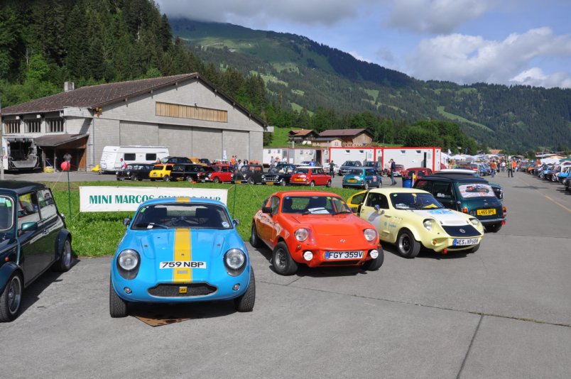38: Swedish registered Mini Panda car converted to left hand drive. 39 etc: 759 NBP is Andrew Tyndale’s Mini Jem Mk. 2, RS-M2-1094. FGY 359V is Richard Porter’s Mini marcos Mk.IV, DH 8277. 41: Schmitt. 42: Karsten Gärtner’s Mini Marcos Mk.IV, DH8299 and Dirk Palapys’s Mini Marcos Mk.IV, DH8422. 43-47: Entertainment Swiss style, with giant cowbells. Sounded like an iron foundry! 52, 54: Mini Jems get together. Aurelien Bini’ Mini Jem Mk.2, RS-M2-1148 on the right. 55-58: Control cabin and views from the gantry. 64-65: The IMM key and trophies. 66-67: Saturday entertainment provided by this acapello group. 68-69: Thanking all the helpers. 70-72: Mini Club Hungary takes over the key. | |||||