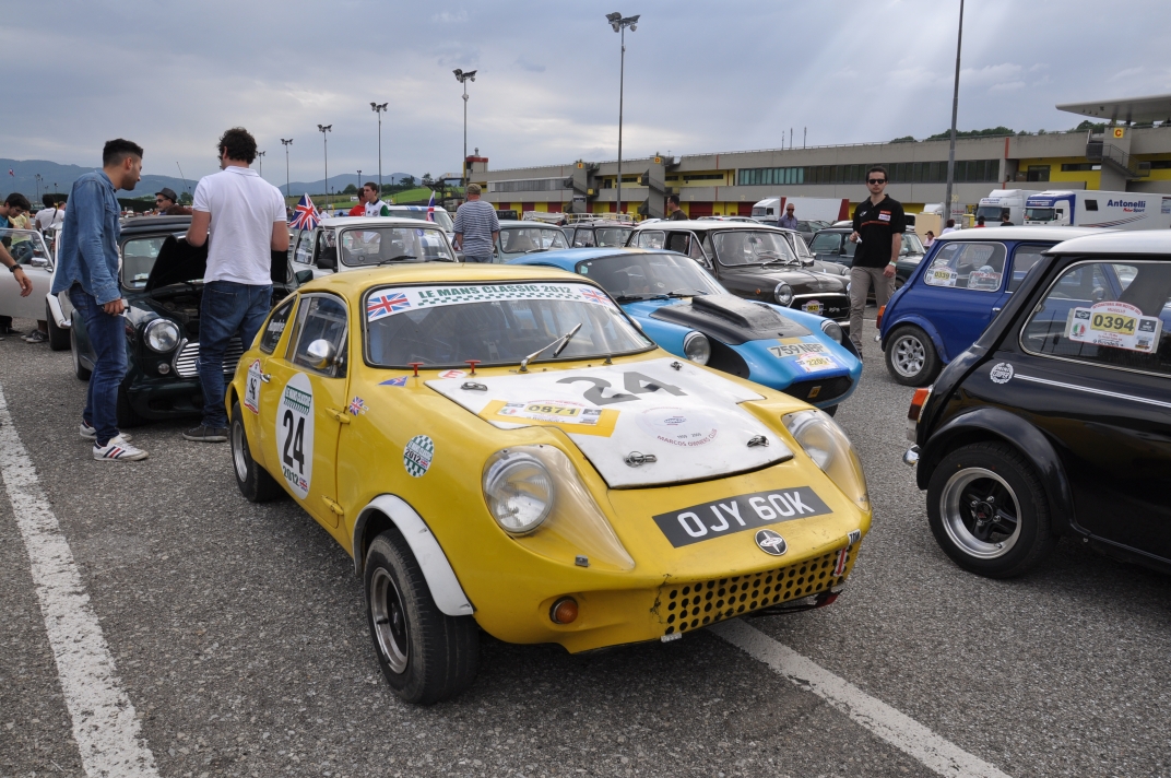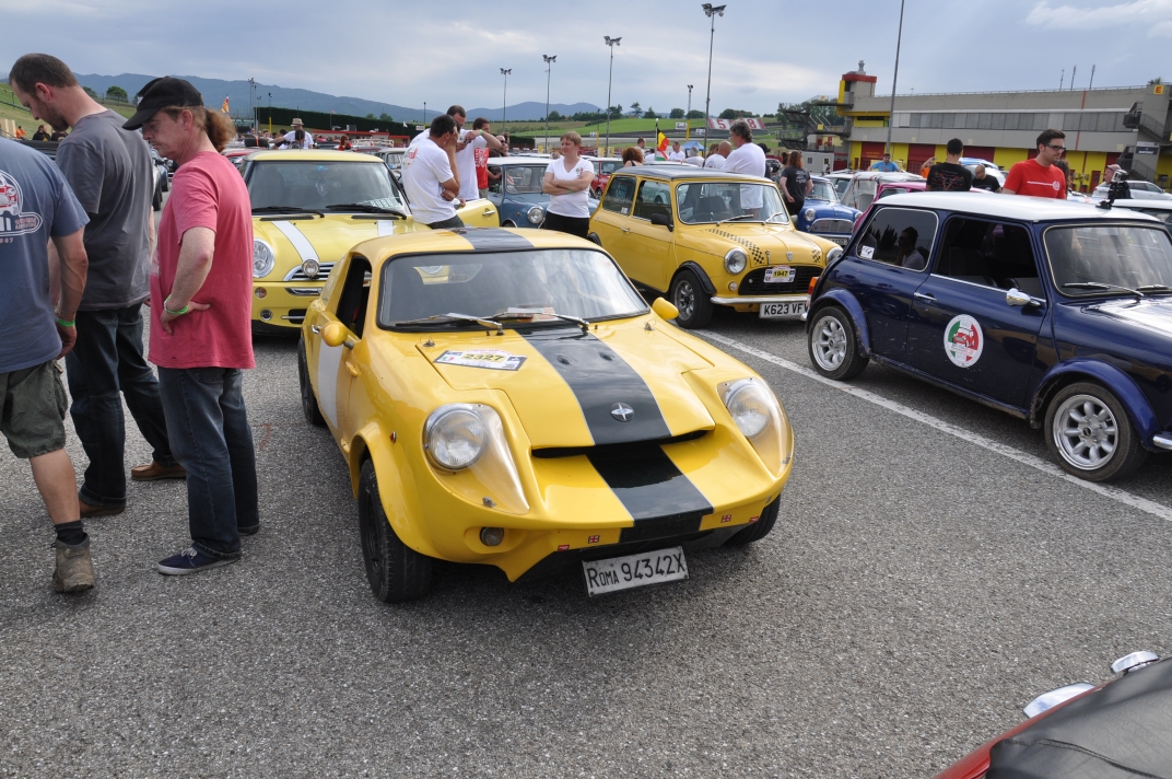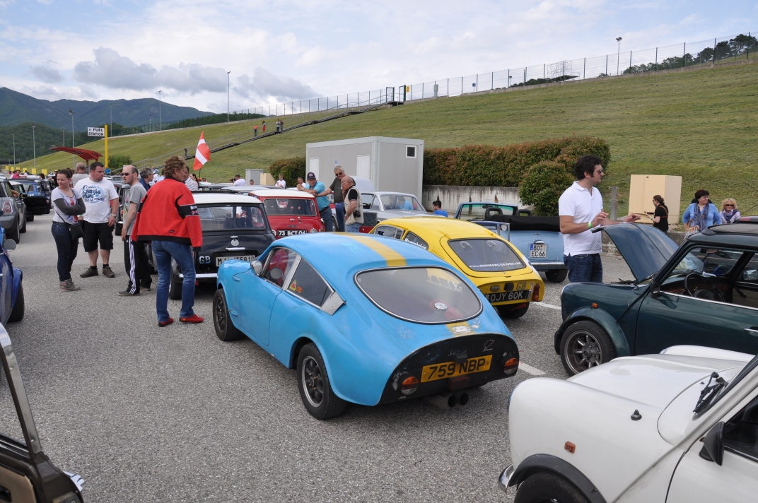 38: Dirk Palapys’s Mini Marcos Mk.IV DH8422. 39: Joost van Diën’s Mini Marcos Mk.III MM7309. 40,57: Andrew Tyndale’s Mini Jem Mk.2 RS-M2-1094. 41: Guy Humphries’s Mini Marcos Mk.III MM7517. 42,43: Minis mass for the parade lap. 44: View from Richard Porter’s Mini Marcos on the parade lap. 45-48: Emil Puras’s Mini Marcos Mk.III MM7050 from Slovakia. 49-56: Virginio Bolla takes a mould of Richard Porter’s bulge! 58: SMOC Promoting IMM 2014 in Kent. 59-61: Mini Beach Car. 62: Richard Porter on the track in Mini Marcos Mk.IV DH8277 (Rob Goldsmith) 63-65: Our cars on the track (Roald Rakers). 66: Massimo Pucci’s Mini marcos in the paddock (Roald Rakers). 67,68: caes line up in the paddock. 69 L-R: Guy Humphries, Andrew Tyndale and Adrian Tyndale review Andrew’s video. 70: Another photo opportunity at the main entrance. 75: Final view of the Autodrome. 72,73: The scenic way home! 74,75: VTEC engined FRA Mini encountered on the way home. 76-78: Obligatory photo stop at Reims-Gueux. | |||||